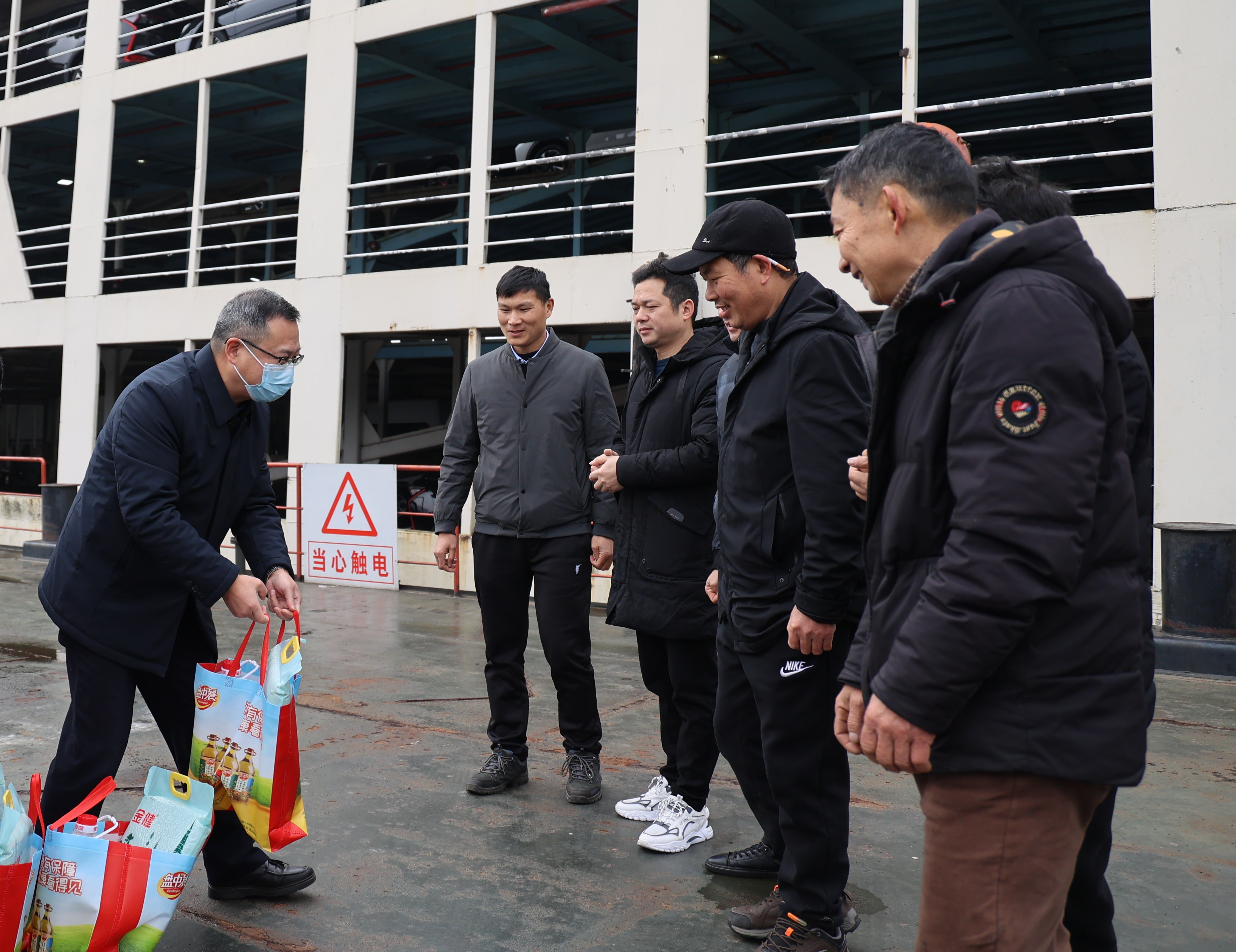 春節(jié)將至,歲寒情深。船員作為一個特殊的職業(yè)群體,工作和生活在船舶上需面對惡劣氣候、封閉環(huán)境、緊張工作等情況,常年不能回家,新春佳節(jié)更難以與家人團聚。為了讓在港船舶在長沙港度過一個歡樂祥和的春節(jié),2022年1月30日,新港公司黨委副書記、總經理辛華,黨委委員、紀委書記黃紅星及副總經理鄭美洲帶領市場營銷部、生產運營部工作人員對已到港船舶進行春節(jié)前的親切慰問,并給予安全提醒。  聲聲問候顯真情,句句話語暖人心。船員們表示非常感謝來自新港公司的慰問和節(jié)日祝福,在平時的工作中已感受到了新港人的高素質和專業(yè)化水平,節(jié)日期間更感受到了新港公司優(yōu)質服務和人性化服務,讓漂泊在外的船員們感受到了滿滿的關懷和溫暖。 |